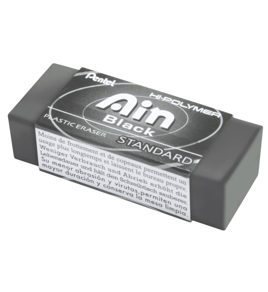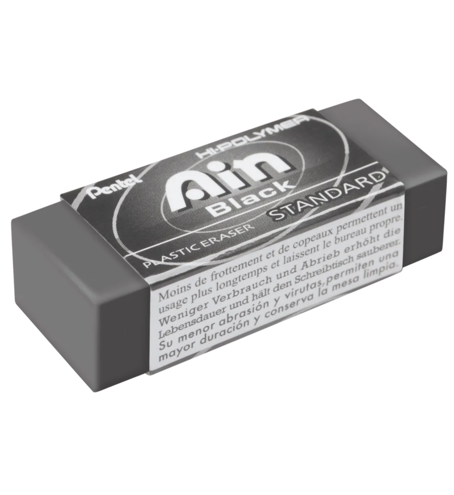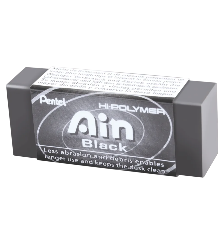 Czarna gumka ołówkowa Hi-Polymer. Wyjątkowo giętka i miękka, działa bez potrzeby mocnego dociskania do powierzchni. Nie narusza struktury papieru, pozostawia zeszyty, dokumenty oraz notatki w doskonałym stanie. Nie pęka, nie twardnieje, nie brudzi się. Pozostawia małą ilość ścinek. Nie zawiera szkodliwych substancji takich jak lateks i ftalany. Jest bezpieczna dla dzieci.