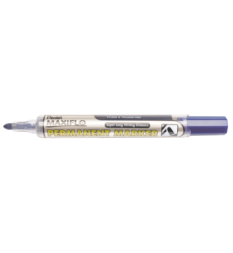 Wykonany w technologii MAXIFLO. Ekonomiczny system dozowania tuszu do końcówki – za pomocą tłoczka. Dwukrotnie dłuższa linia pisania niż w standardowych markerach permanentnych. Płynny tusz na bazie alkoholu. Bezpieczny w użytkowaniu – nie zawiera ksylenu i toluenu – substancji szkodliwych dla zdrowia i środowiska. Do wyboru kolor: czarny, czerwony, niebieski, zielony.