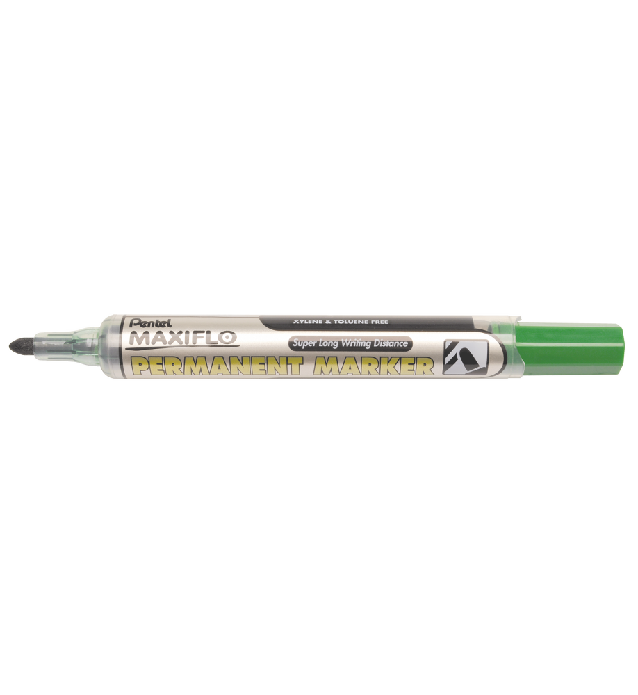 Wykonany w technologii MAXIFLO. Ekonomiczny system dozowania tuszu do końcówki – za pomocą tłoczka. Dwukrotnie dłuższa linia pisania niż w standardowych markerach permanentnych. Płynny tusz na bazie alkoholu. Bezpieczny w użytkowaniu – nie zawiera ksylenu i toluenu – substancji szkodliwych dla zdrowia i środowiska. Do wyboru kolor: czarny, czerwony, niebieski, zielony.