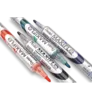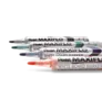Marker do białych i ceramicznych tablic. Płynny tusz dozowany w razie konieczności nawilżenia końcówki za pomocą tłoczka (zamiast tradycyjnego sączka). Marker pisze wyrazistą linią aż do ostatniej kropli tuszu. Kilkakrotnie dłuższa linii pisania niż w standardowych markerach z sączkiem - 1200 m. Nie zawiera substancji trujących ksylenu ani toluenu. Nadaje się na papier, plastik, karton, tablice suchościeralne.