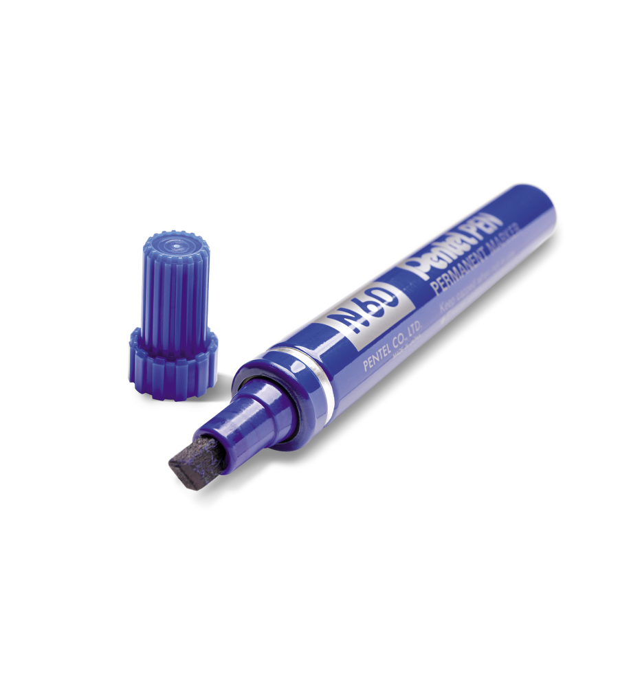 Marker wodoodporny, ze ściętą końcówką. Nadaje się na każdą powierzchnię: metal, szkło, plastik, gumę i gruby papier. Wyjątkowo trwała końcówka odporna na odkształcanie. Hermetycznie foliowany. Do wyboru kolor: czarny, czerwony, niebieski, zielony.