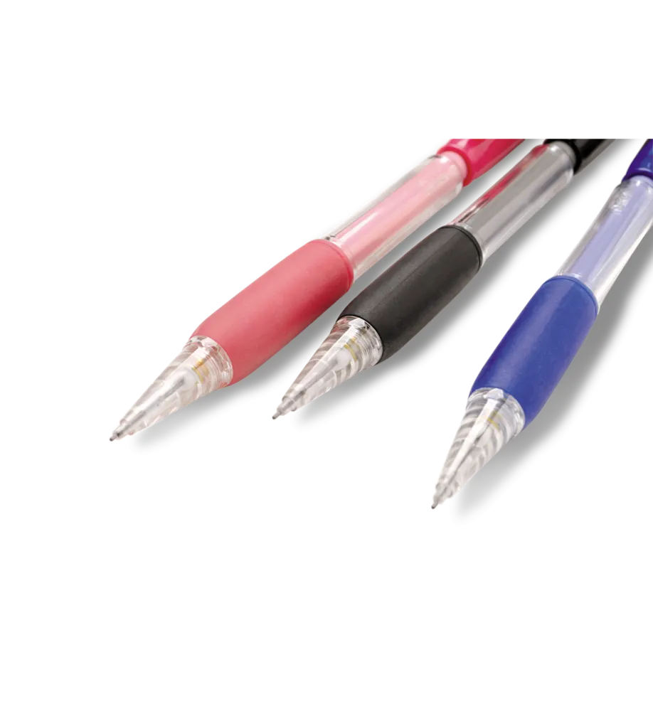 Ekonomiczny i bardzo wygodny ołówek automatyczny 0,7 mm. Do codziennego pisania i szkicowania. Wysokiej jakości grafity, dozowane za pomocą systemu przyciskowego. Sprawna kontrola ilości wysuwanego wkładu. Smukła obudowa, gumowy uchwyt do wygodnego chwytania. Atrakcyjne kolory korpusów. Przystępna cena.