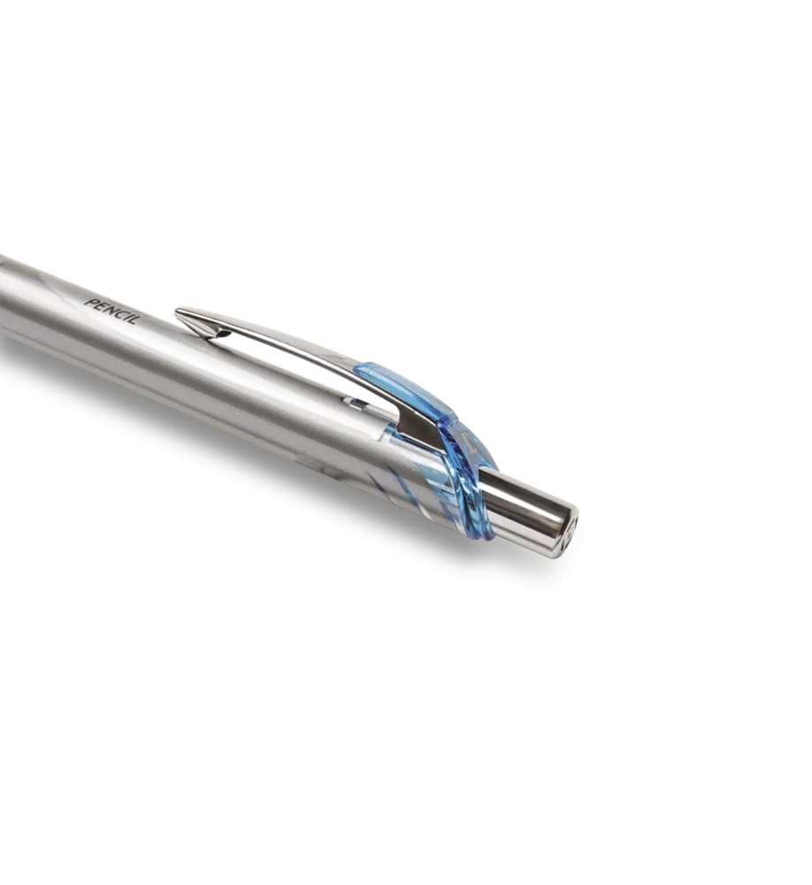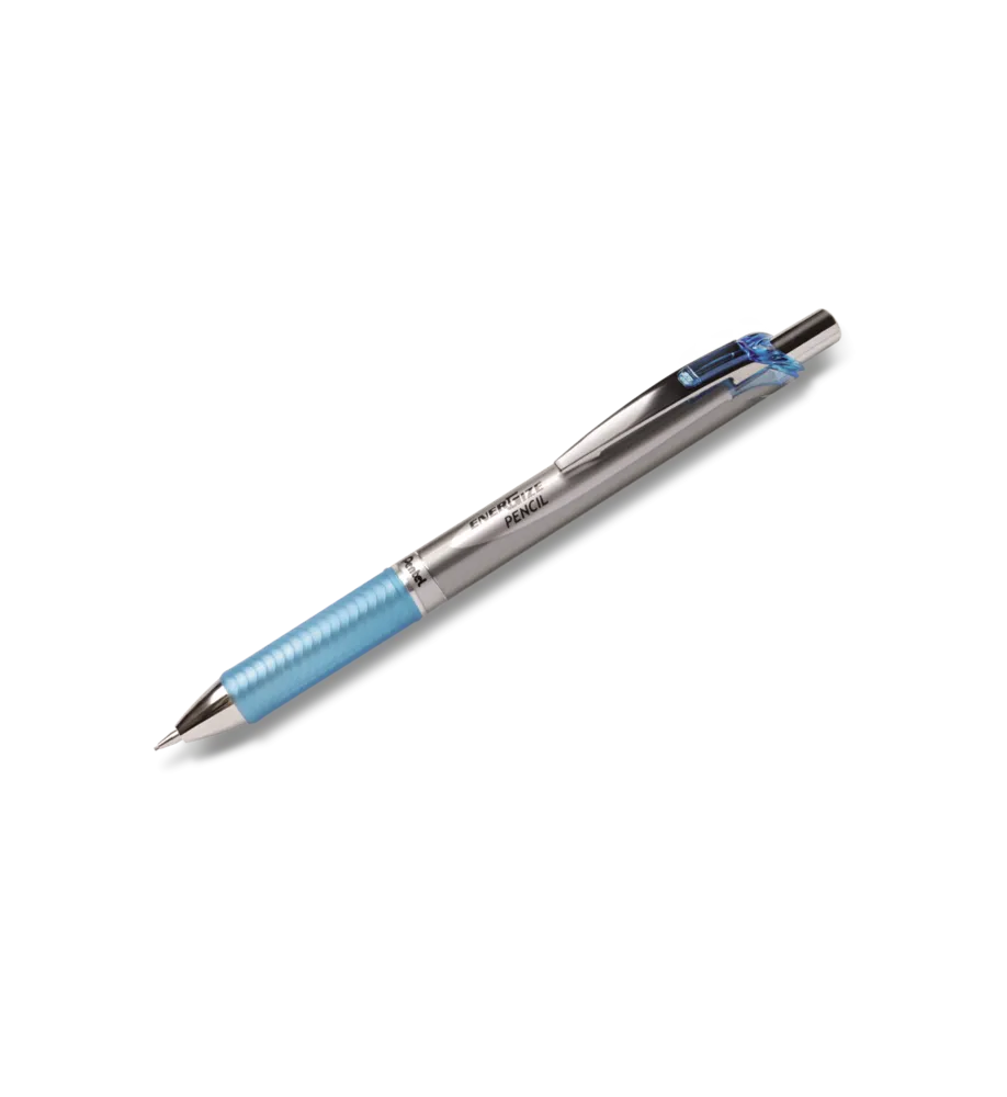 Ołówek automatyczny EnerGize w stylistyce linii EnerGel. Podwójny system przyciskowy zabezpiecza końcówkę przed uszkodzeniem i chroni grafit przed złamaniem. Po pierwszym kliknięciu końcówka typowa dla długopisu, po drugim grafit w odpowiedniej długości. Obudowa o idealnie wyważonym punkcie ciężkości. Kolorowy, gumowy, antypoślizgowy uchwyt gwarantuje komfort użytkowania. Metalowy klips do wpięcia w notes lub kieszeń. Pasuje do kompletu z BL77 i BLN75 z serii EnerGel.