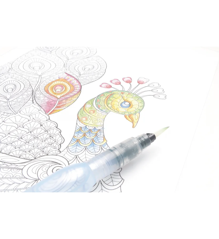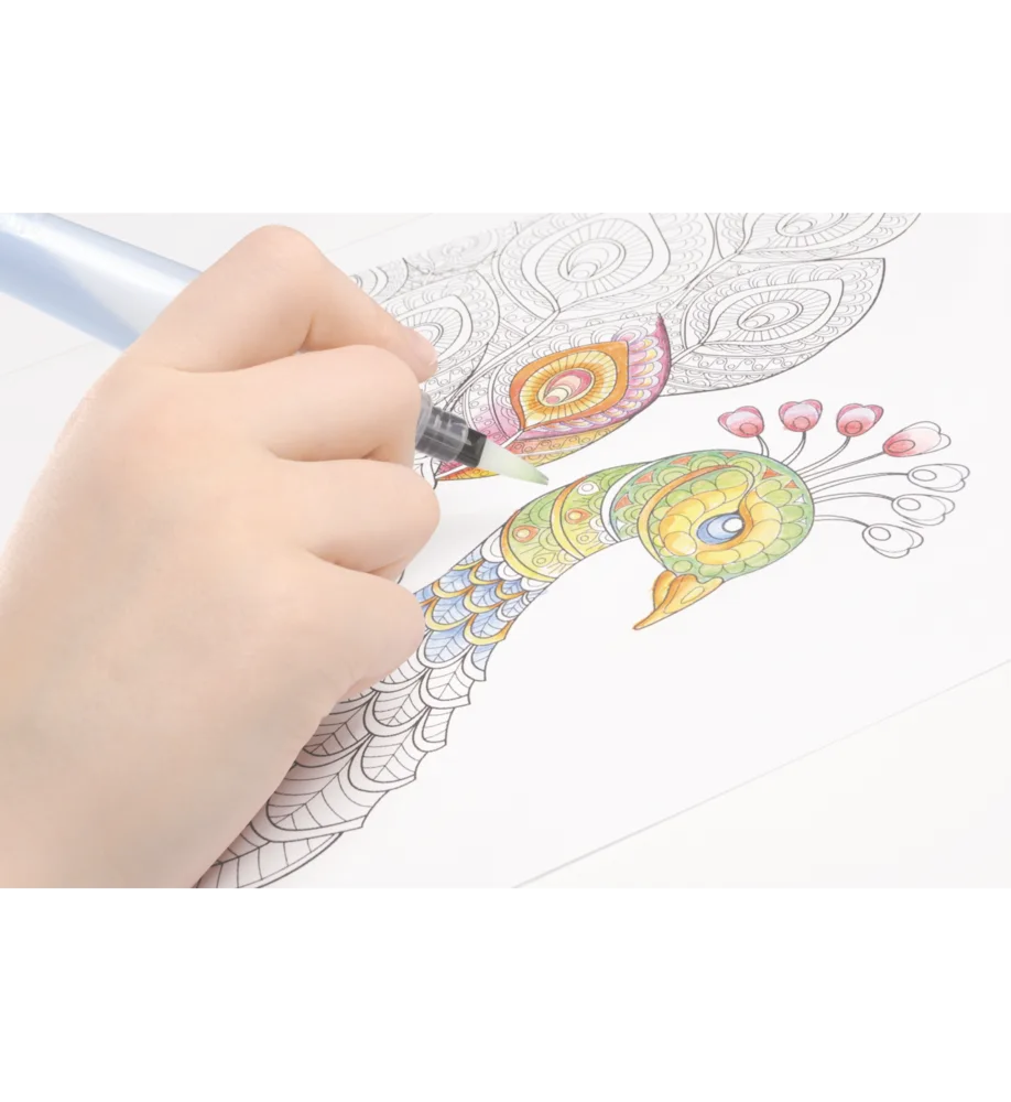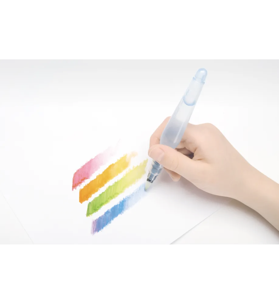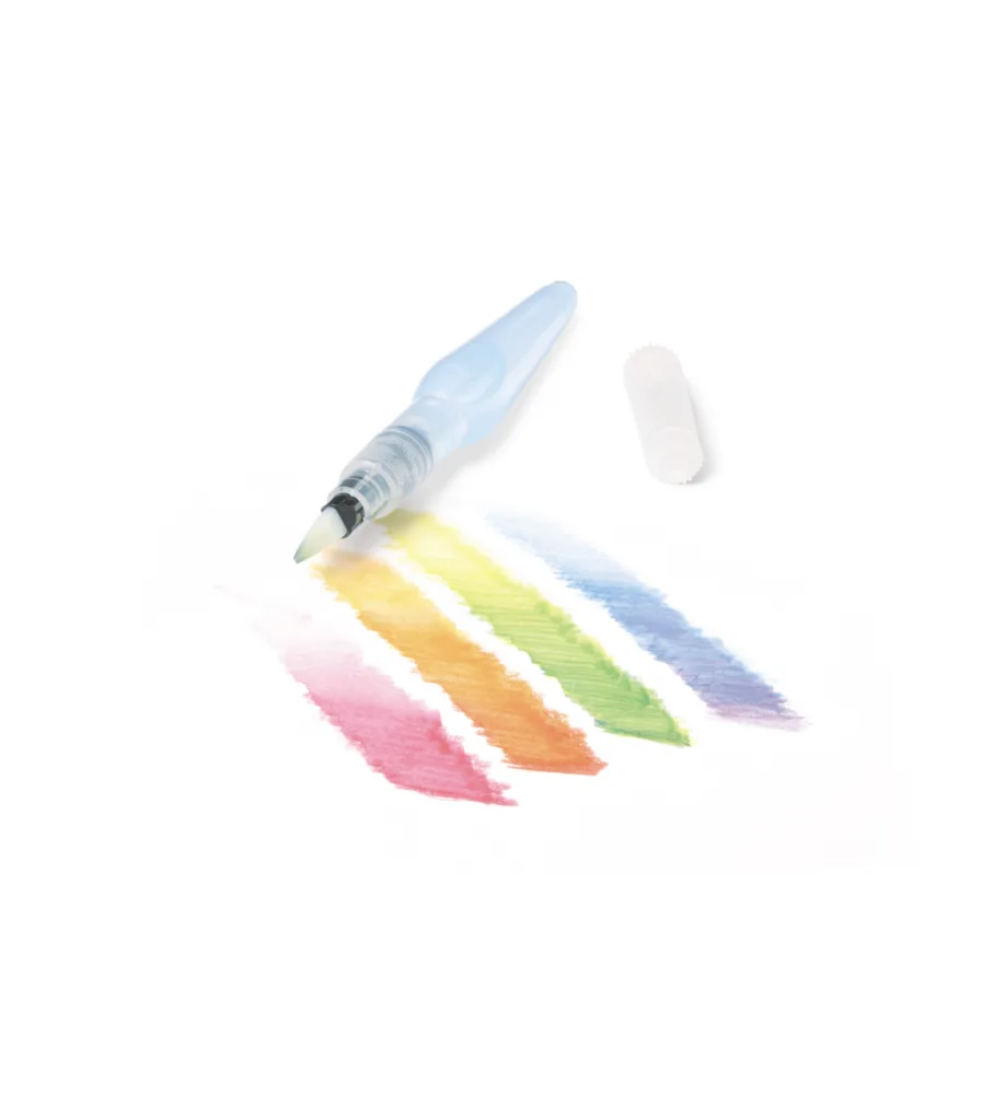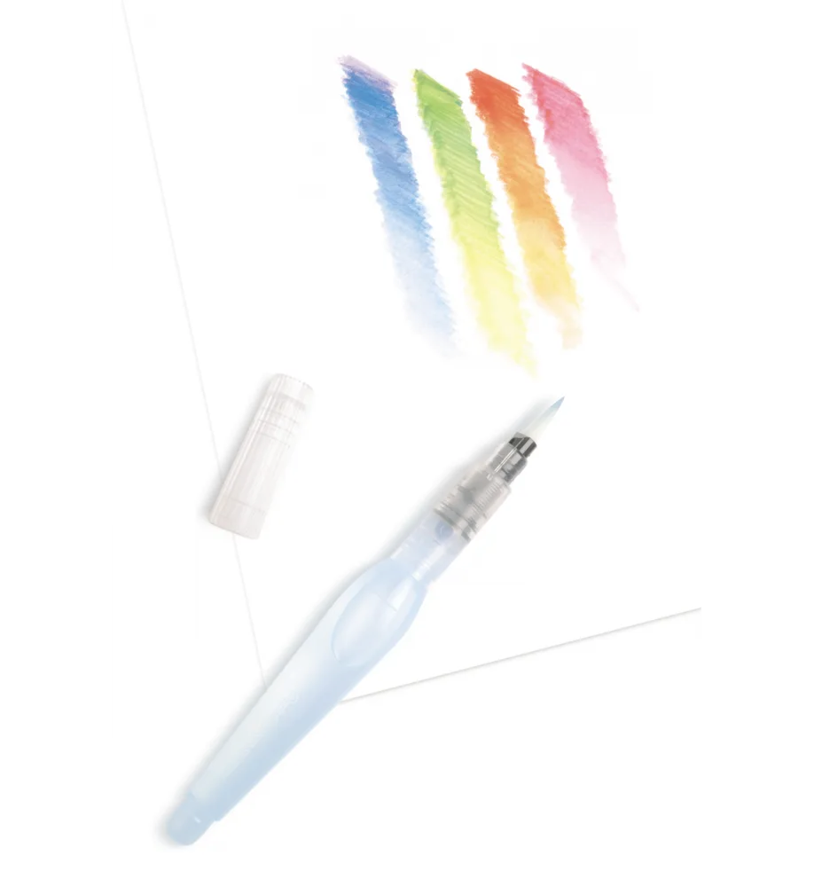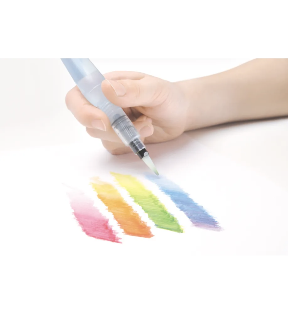 Pędzelek wodny FRH. Niezastąpiony w pracy z akwarelami i kredkami akwarelowymi. Do tworzenia ilustracji, pejzaży, melancholijnych obrazów. Prosty w obsłudze, łatwy w czyszczeniu (moczymy go w wodzie). Służy do rozmazywania kolorów. Higieniczny i wygodny w użytkowaniu. Zastępuje tradycyjny pędzelek i kubek na wodę. Przezroczysta obudowa pozwala kontrolować ilość płynu w zbiorniczku. Poprzez delikatne ściśnięcie obudowy doprowadzamy wodę do końcówki.