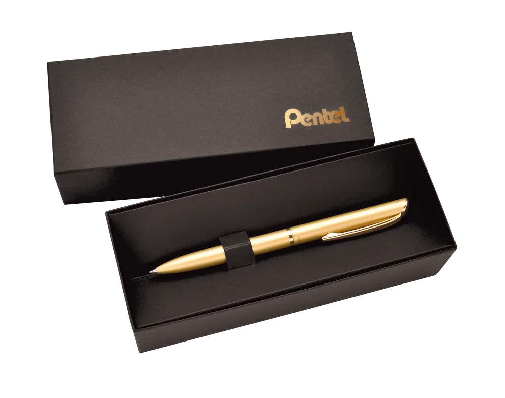 Całość zapakowana jest w eleganckie, wyjątkowe etui prezentowe marki Pentel, które dodaje produktowi prestiżu i sprawia, że stanowi doskonały pomysł na gustowny prezent.Nadaje się na biznesowy prezent.