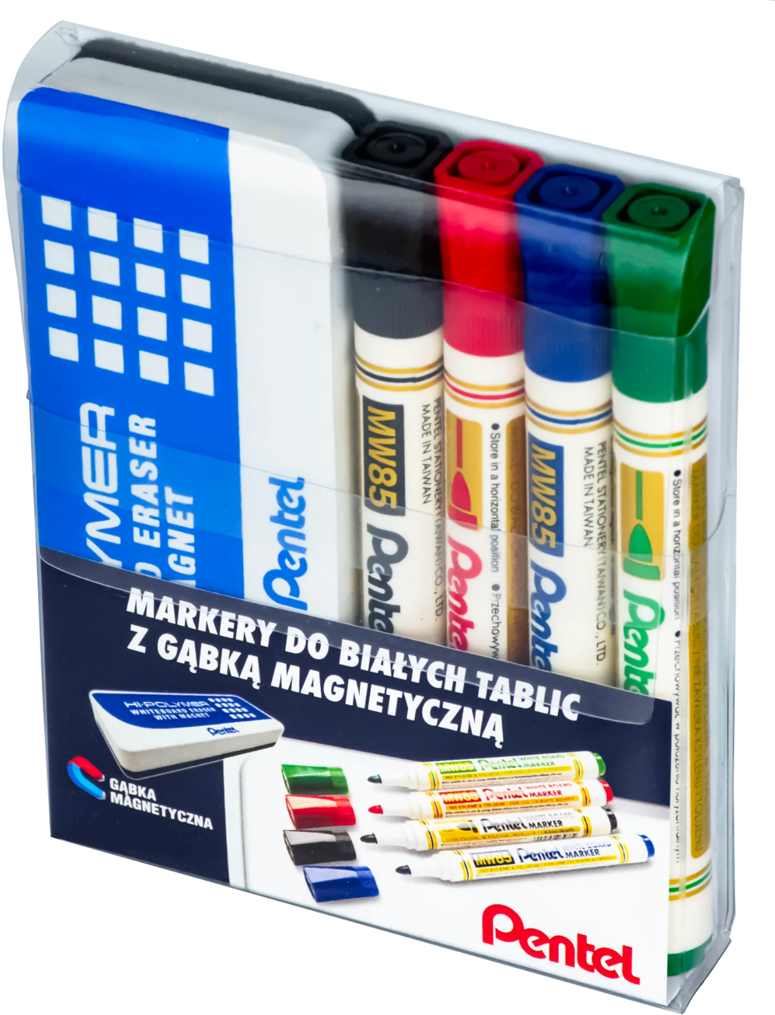 Komplet 4 ekonomicznych markerów do białych i ceramicznych tablic. Tusz jest łatwo usuwalny z powierzchni tablicy, nie pozostawia na niej trwałych śladów. Niezbędny do pracy w każdym biurze, pracowni i na uczelni. W zestawie znajduje się również gąbka magnetyczna, która z łatwością przylega do powierzchni tablicy, dzięki czemu zawsze masz ją pod ręką. Gąbka skutecznie usuwa ślady po markerach nie pozostawiając smug i zarysowań.